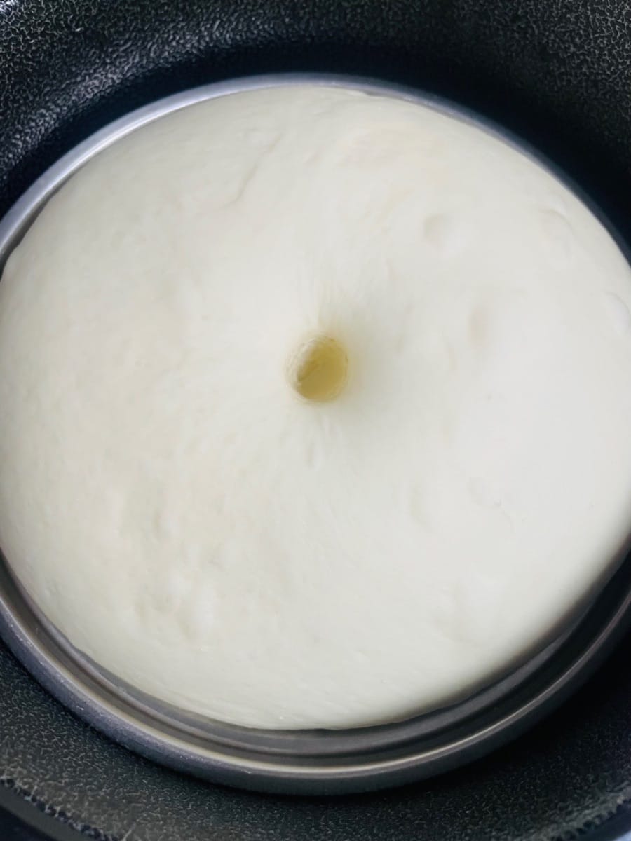 - 반죽이 약 30°C에서 두 배로 부풀어 오를 때까지 발효시키세요. 젖은 손으로 눌렀을 때 다시 튀어 오르지 않으면 완성된 것입니다.