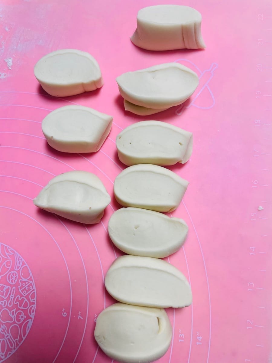 - 냄비에 담아 2차 발효를 시켜 원래 크기의 1.5배가 될 때까지 기다립니다. 물이 끓으면 12분간 찌고, 뚜껑을 열기 전에 3분간 그대로 둡니다.