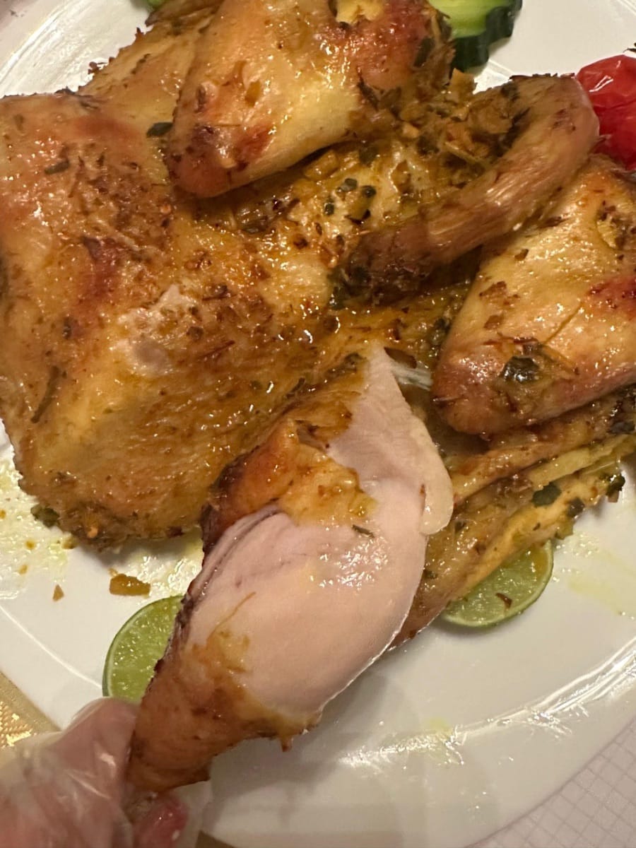 - 그 후 닭고기에 묻은 양념을 긁어내면 완성입니다.