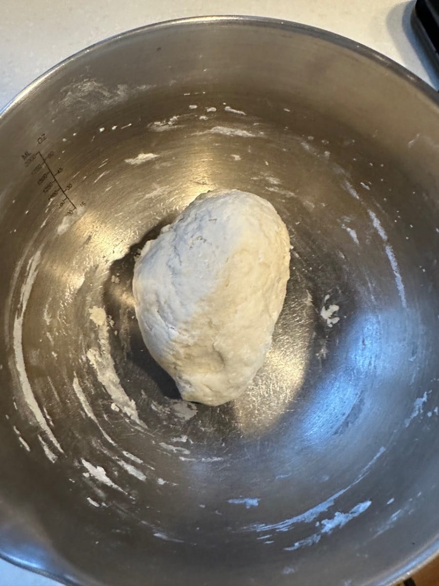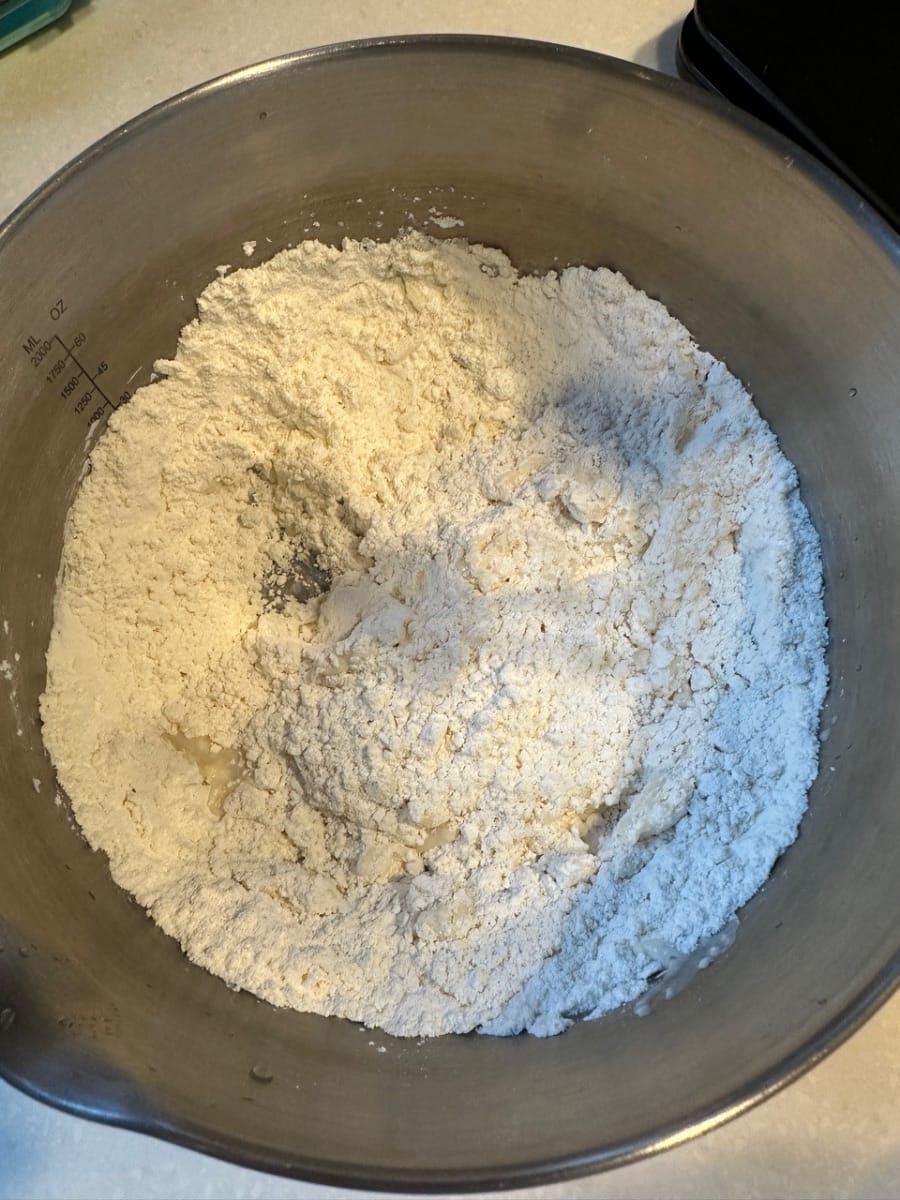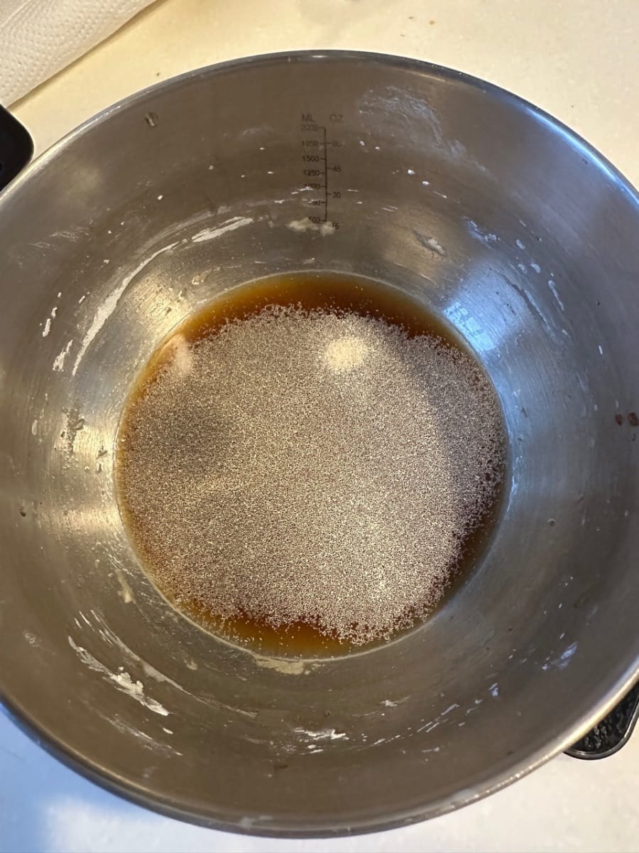 สำหรับการทำแป้งธรรมดา ให้ใส่ยีสต์ น้ำตาล และน้ำก่อน จากนั้นตามด้วยแป้ง นวดจนส่วนผสมเข้ากันดี แป้งไม่จำเป็นต้องเนียนมาก