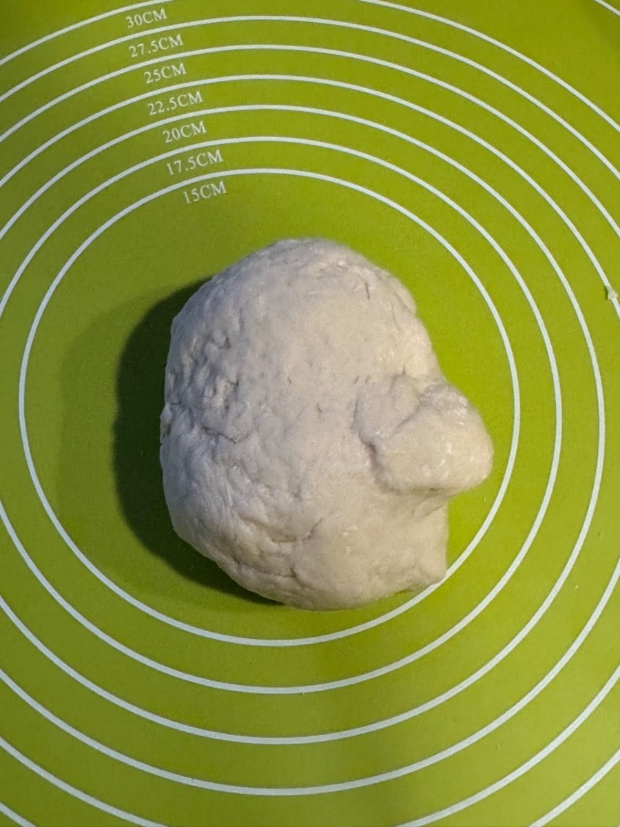ปิดด้วยแผ่นฟิล์มถนอมอาหารขณะที่เรารีดแป้งขาว