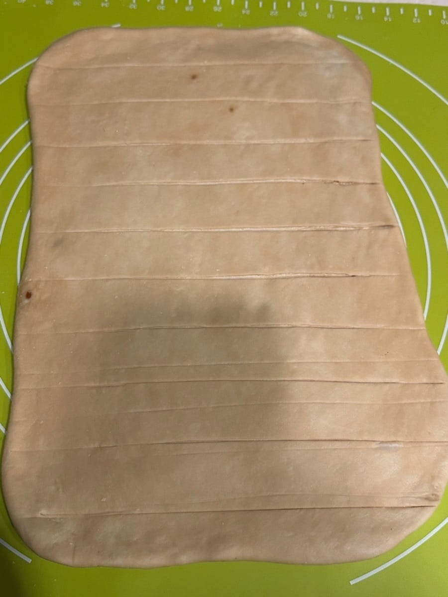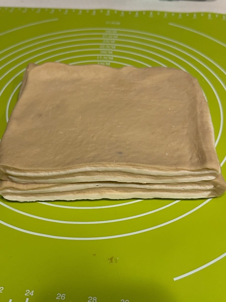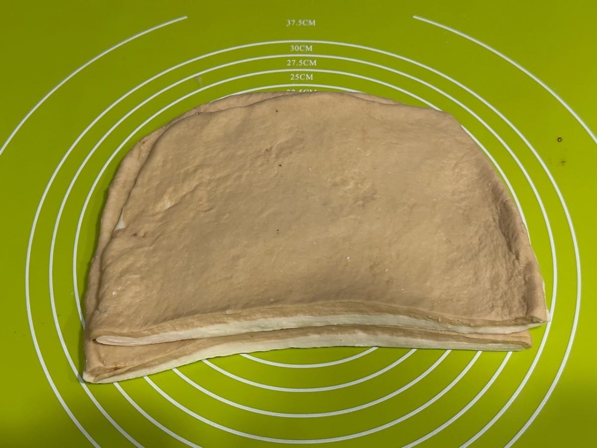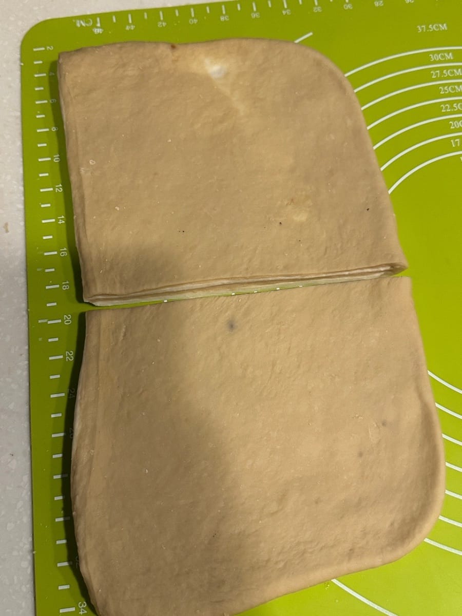 ทำซ้ำขั้นตอนข้างต้น: ตัดแป้งออกเป็นครึ่ง