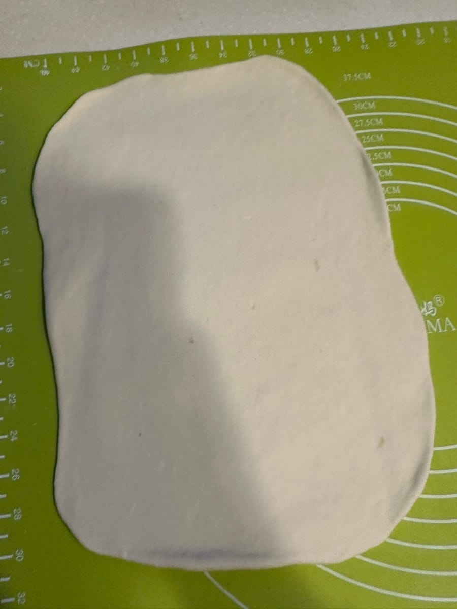 คลึงแป้งสีขาวให้แบนและยาวตามภาพ