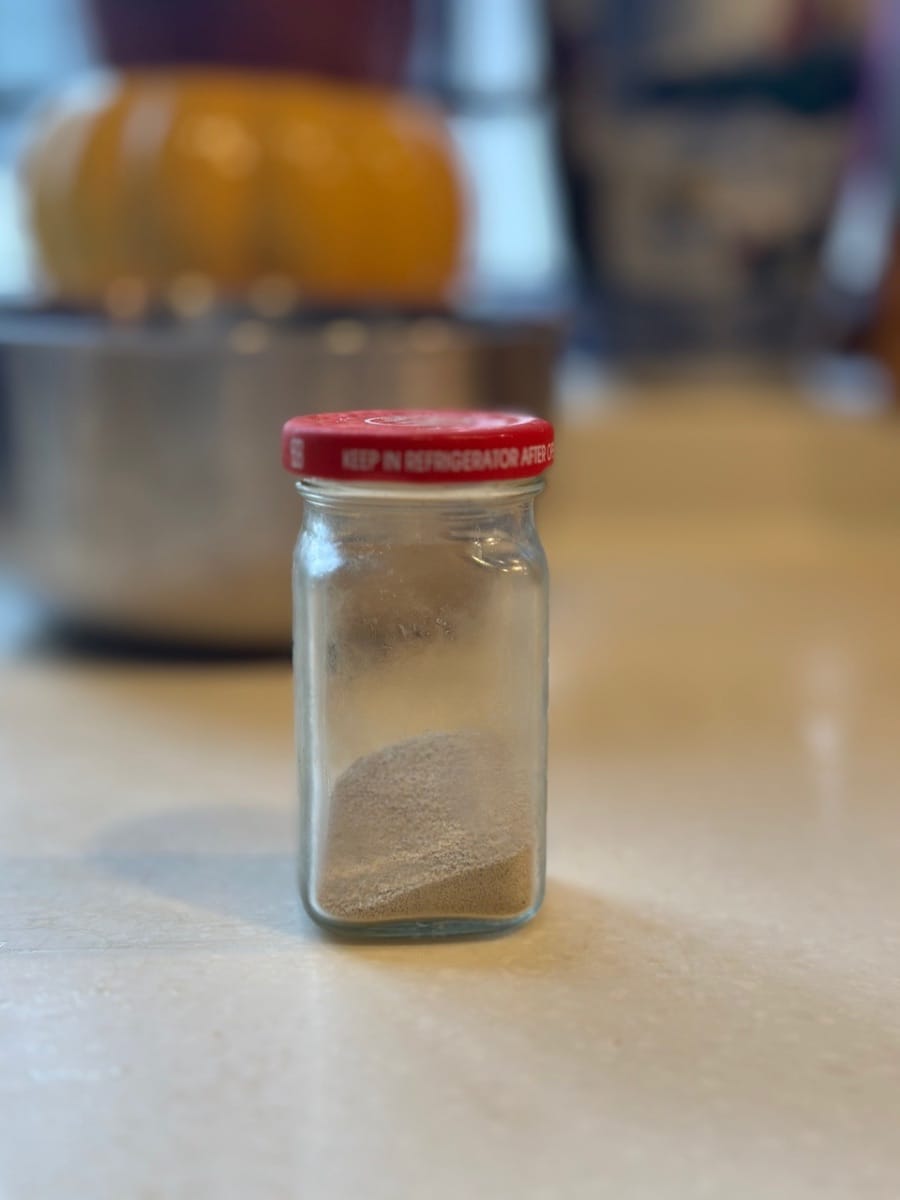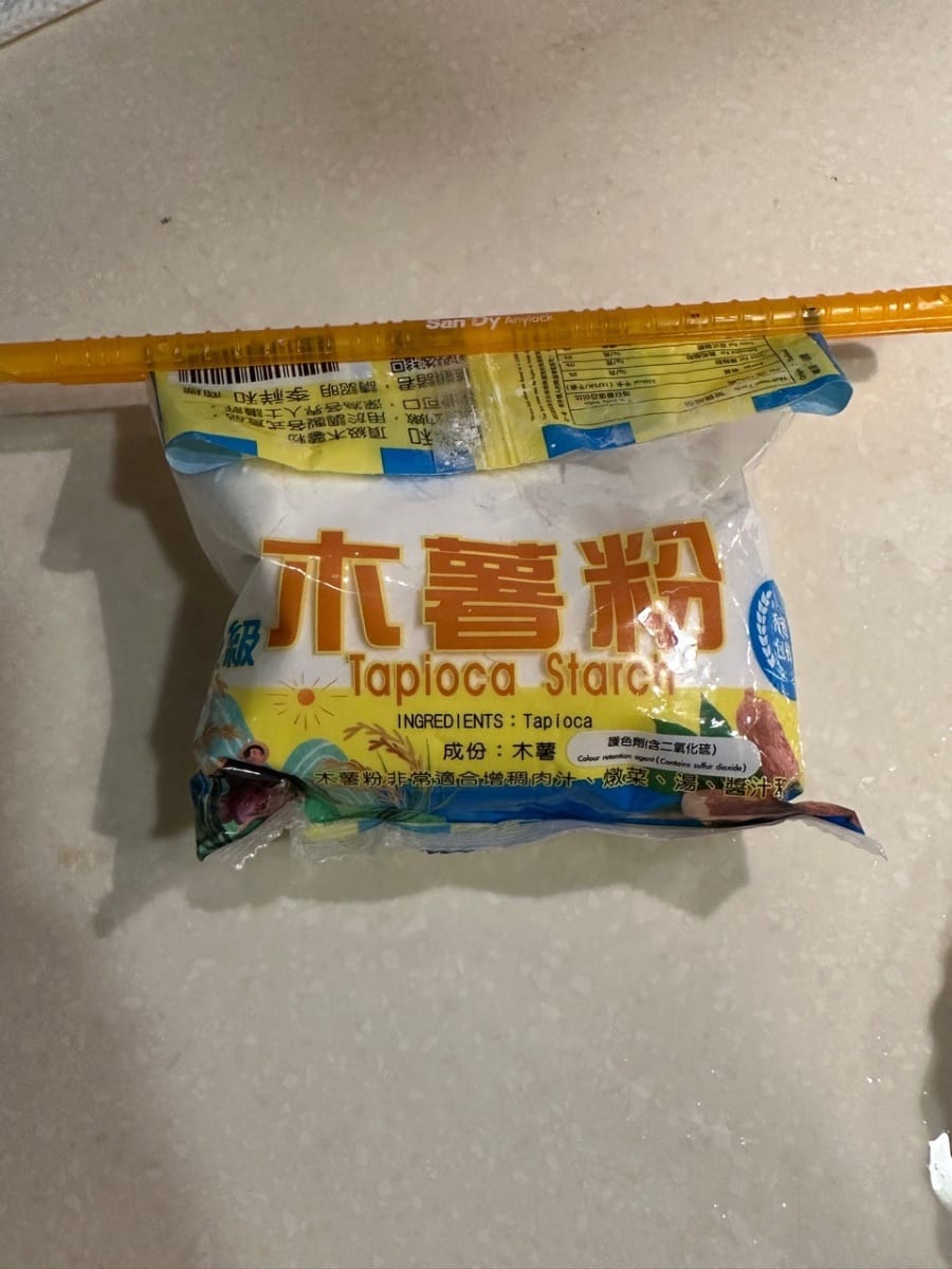 หลังจากนั้น ให้ใส่ยีสต์ แป้งมันสำปะหลัง และแป้งสาลีตามลำดับ