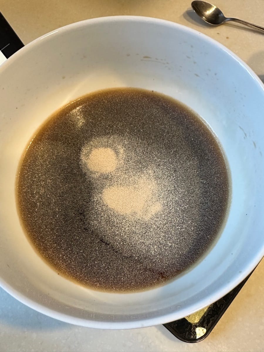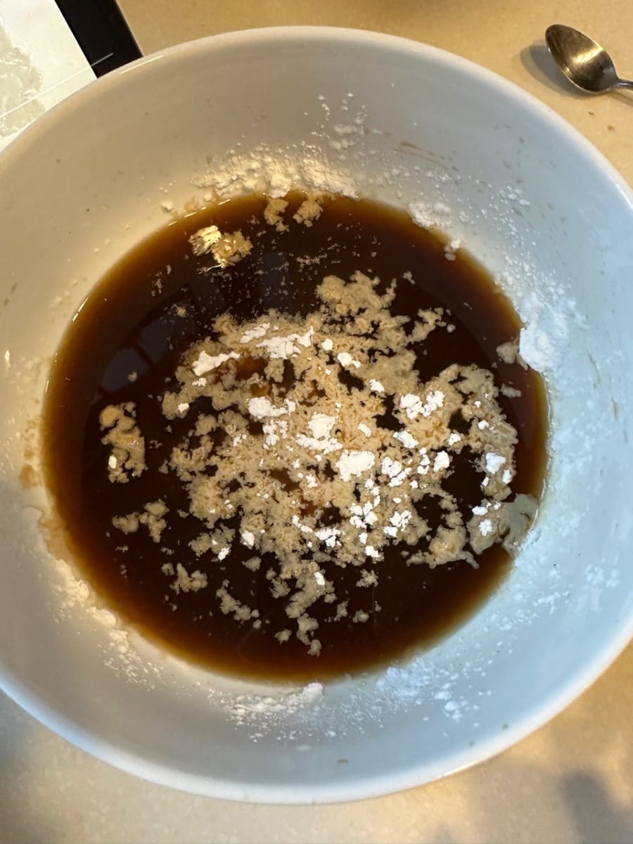 สำหรับแป้งสีน้ำตาล เริ่มจากละลายน้ำตาลทรายแดงในน้ำอุ่น แล้วปล่อยให้เย็นลง