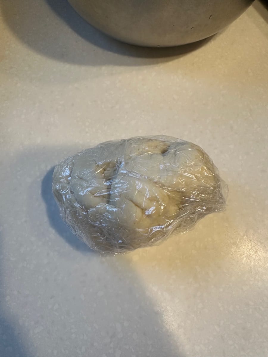 ห่อแป้งด้วยฟิล์มถนอมอาหารแล้วพักไว้