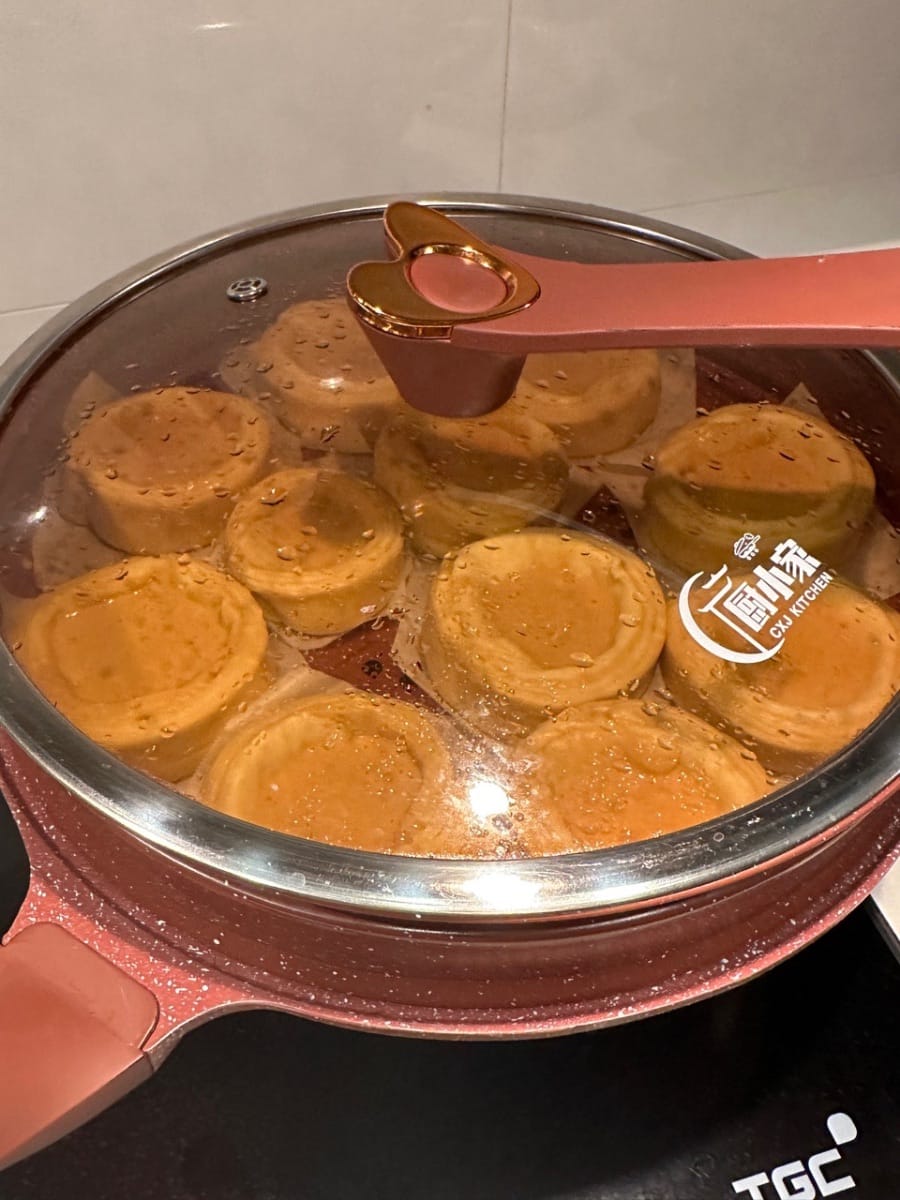 นึ่งโดยใช้ไอน้ำจากหม้อน้ำเดือด นึ่งด้วยไฟปานกลางประมาณ 18 นาที จากนั้นปิดไฟและพักไว้อีก 3 นาที