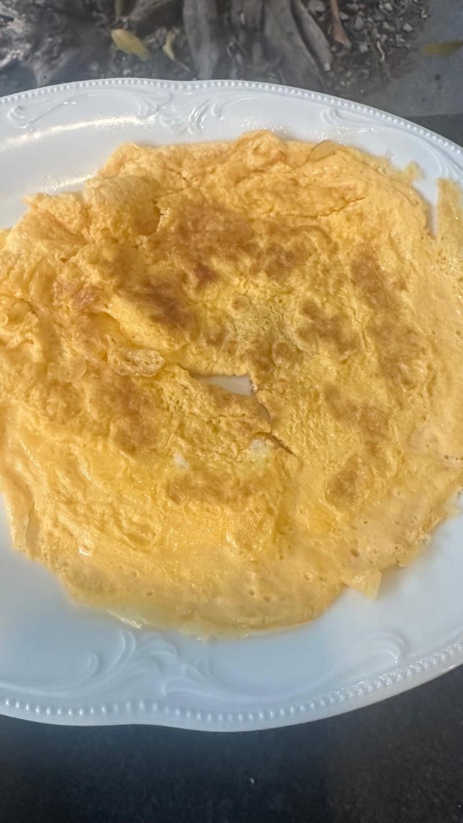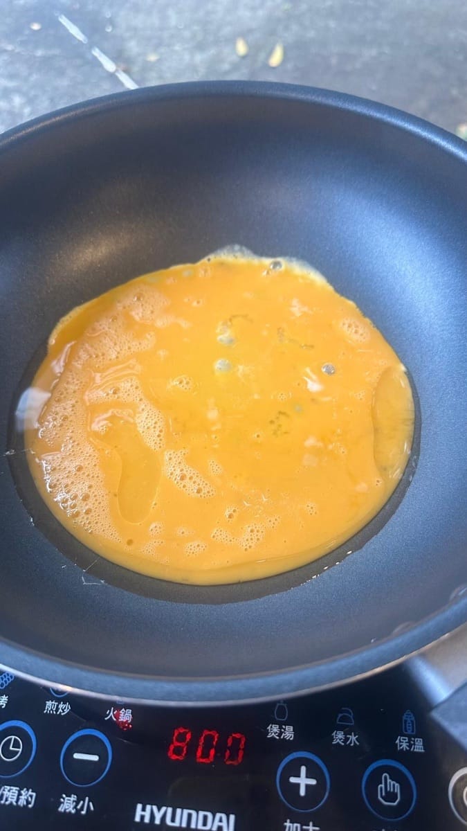 จากนั้นใส่ไข่ที่ตีแล้วลงในกระทะ
