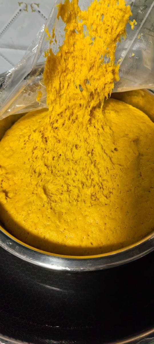 ปอเปี๊ยะฟักทองและถั่วแดงนั้นนุ่มและสีเหลืองทอง ความหวานของฟักทองซึมซาบเข้าสู่แป้ง และถั่วแดงก็อ่อนนุ่ม หวาน และหอม เมื่อกัดเข้าไปจะสัมผัสได้ถึงความนุ่มละมุน ความหวานแบบบ้านๆ ละลายในปาก อบอุ่นทั้งหัวใจและท้อง