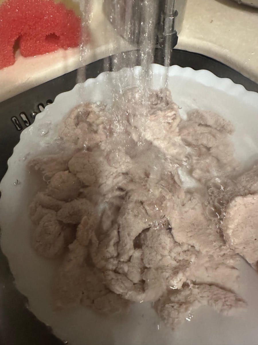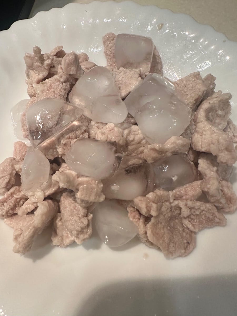 เช่นเดียวกัน ล้างด้วยน้ำเย็น สะเด็ดน้ำ แล้วพักไว้กับน้ำแข็งจนกว่าเนื้อจะเย็นสนิท