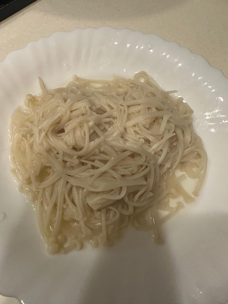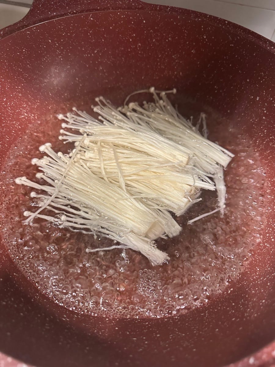 ลวกเห็ดเอโนกิในน้ำเดือดประมาณ 2 นาที