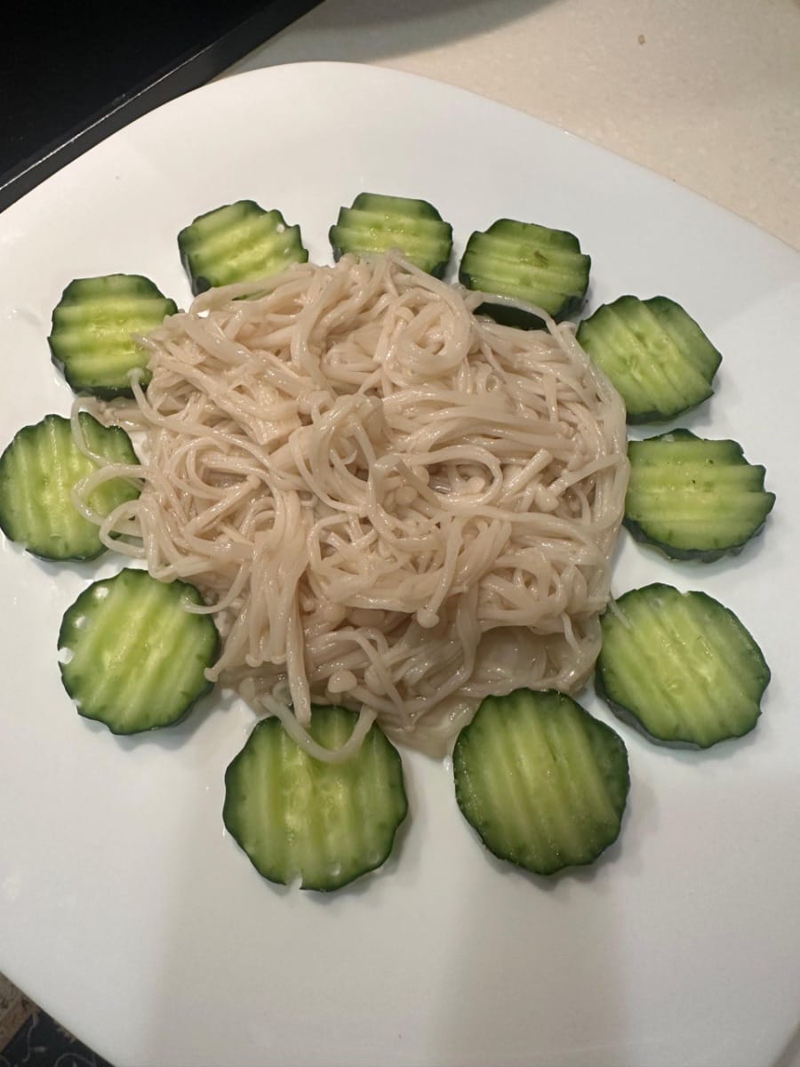 เริ่มโดยวางเห็ดเอโนกิไว้ด้านล่างสุด