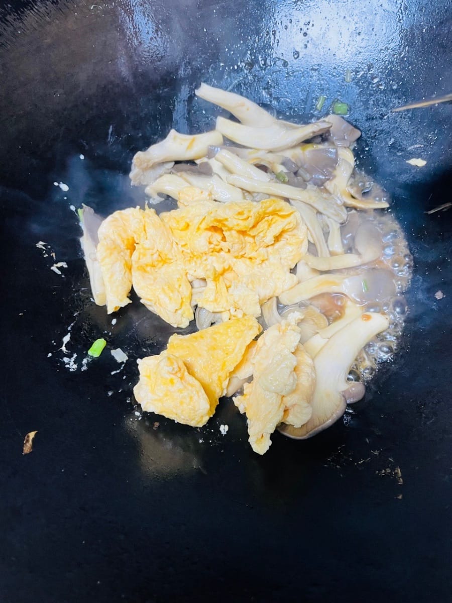 เห็ดนางรมผัดไข่จานนี้อร่อยเลิศ! เห็ดนางรมซึมซับรสชาติเครื่องปรุงทั้งหมดอย่างเต็มเปี่ยม ทุกคำนุ่มละมุนลิ้น หอมกลิ่นซอสหอยนางรมและซีอิ๊วขาว บวกกับความหวานจากน้ำตาลเล็กน้อย อร่อยจนหยุดไม่ได้! ไข่ตุ๋นจนเนียนและนุ่ม หอมกลิ่นเห็ดนางรมยิ่งเข้ากันเป็นสองเท่า โรยต้นหอมซอยสุดท้ายส่งกลิ่นหอมอบอวลชวนลิ้มลอง กัดคำเดียว ความสดชื่นของเห็ดนางรมและกลิ่นหอมของไข่ก็อบอวลในปาก ทานคู่กับข้าวสวยอร่อยจนแทบจะกินหมดชามเลยทีเดียว สำหรับเมนูง่ายๆ ที่ทำกินเองที่บ้านแบบนี้ ถือเป็นเครื่องเคียงที่ลงตัวกับข้าวสวยอย่างแท้จริง!