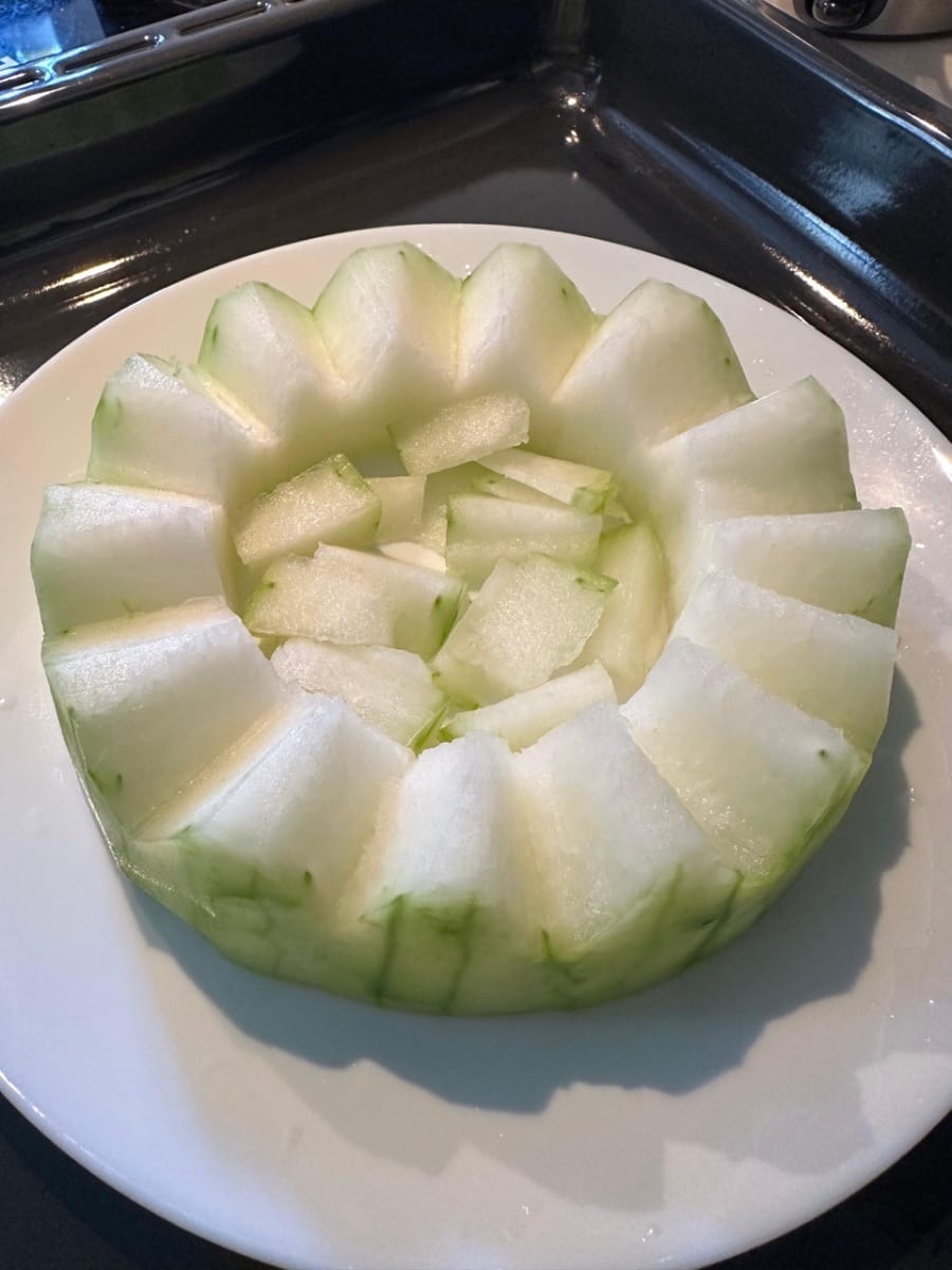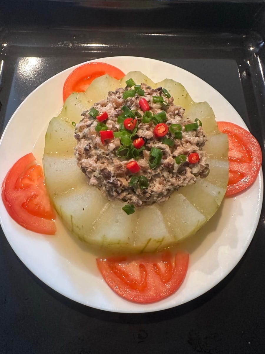 เมนูนี้เป็นอาหารเลิศรสสุดคลาสสิกที่ได้รับความนิยมทั่วประเทศจีน แตงโมดูดซับรสชาติกลมกล่อมของผักดอง เห็ดหอม และเนื้อหมู ทำให้ได้รสชาติที่นุ่มและหวาน! กลิ่นเค็มของผักดอง ความสดชื่นของเห็ดหอม และกลิ่นหอมของต้นหอมผัด ผสานกันอย่างลงตัวในแตงโม! รสชาติสดชื่น ไม่มันเยิ้ม ละลายในปาก ทุกคำที่ทานคือความอร่อยที่น่าประหลาดใจ!