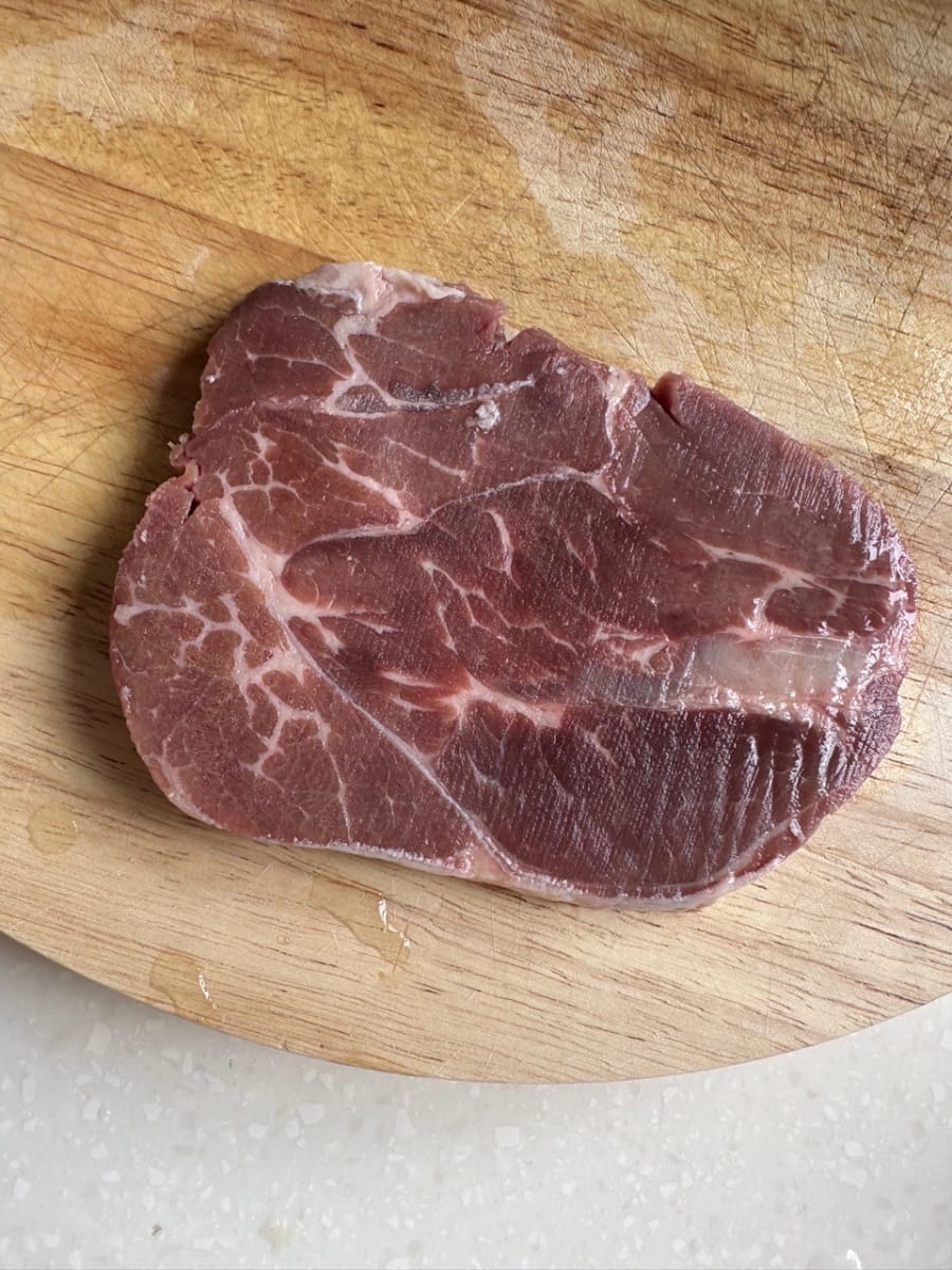ควรหั่นเนื้อสเต็กเป็นชิ้นสี่เหลี่ยมลูกเต๋าด้วย