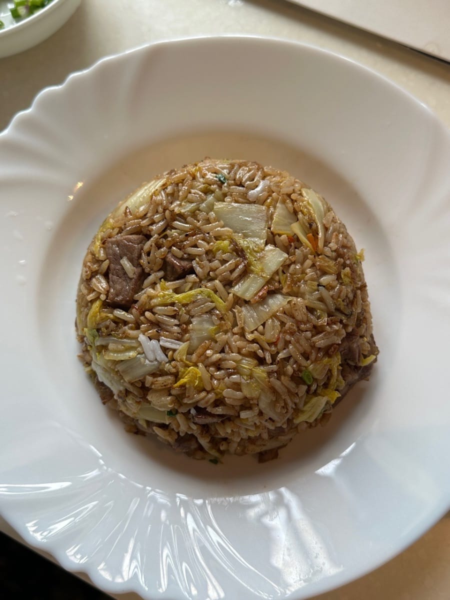 ค่อยๆ ตักใส่ลงบนข้าวผัดอย่างระมัดระวัง แล้วโรยหน้าด้วยต้นหอมซอย เท่านี้ก็เสร็จแล้ว! เสิร์ฟและรับประทานได้เลย!