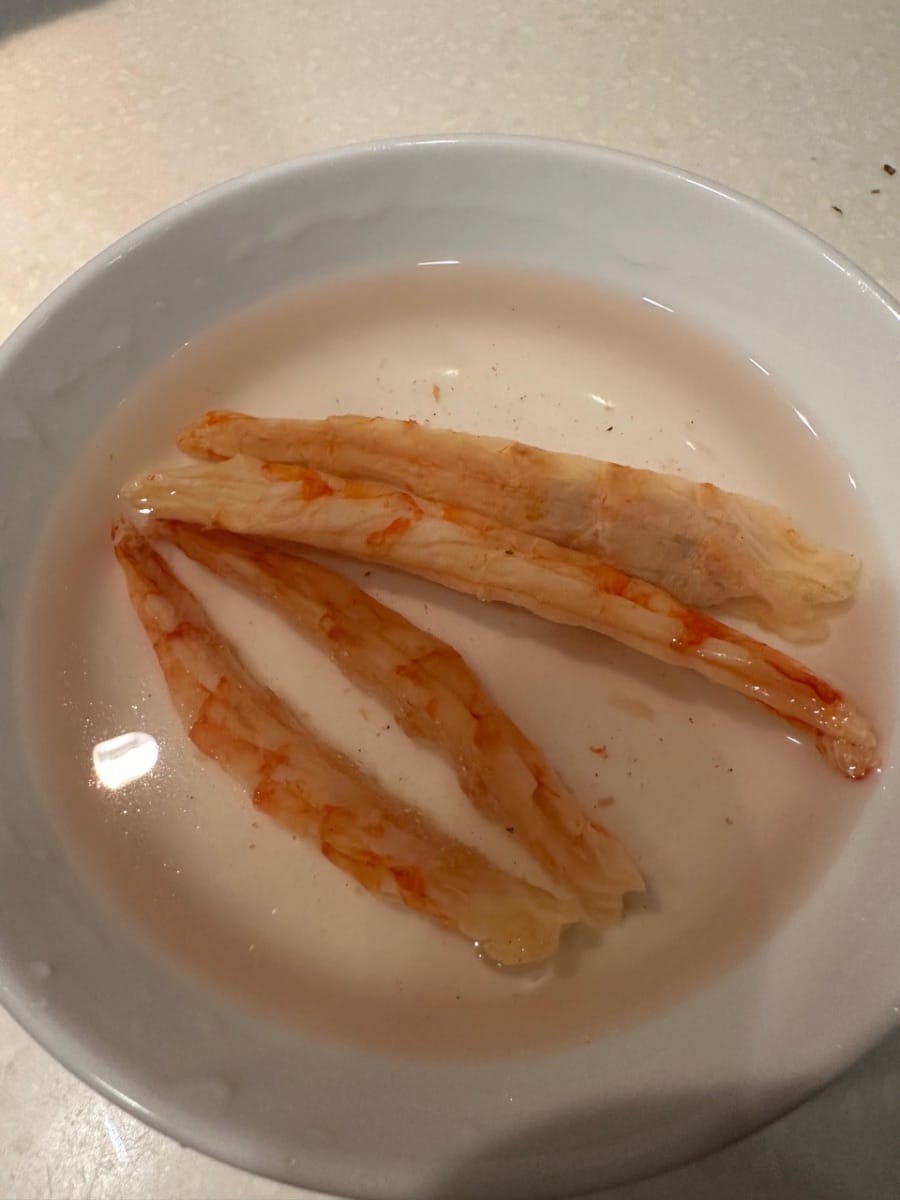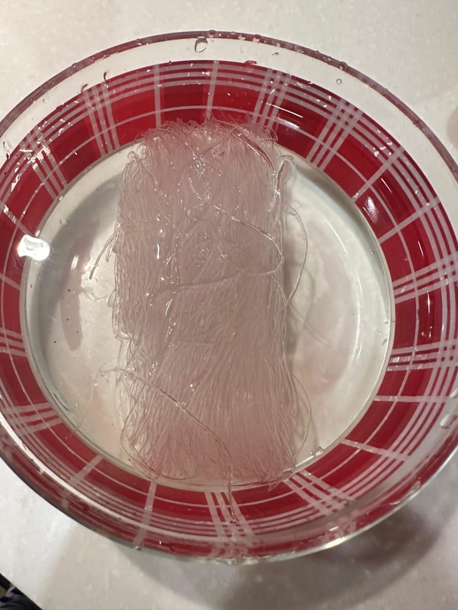 เริ่มต้นด้วยการแช่เส้นหมี่ กุ้งแห้ง และหอยเชลล์แห้งประมาณ 15 นาที เมื่อแช่เสร็จแล้ว ให้หั่นกุ้งแห้งและหอยเชลล์แห้งเป็นชิ้นเล็กๆ