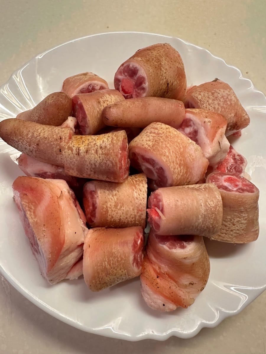 ขั้นแรก ล้างหางหมูให้สะอาด