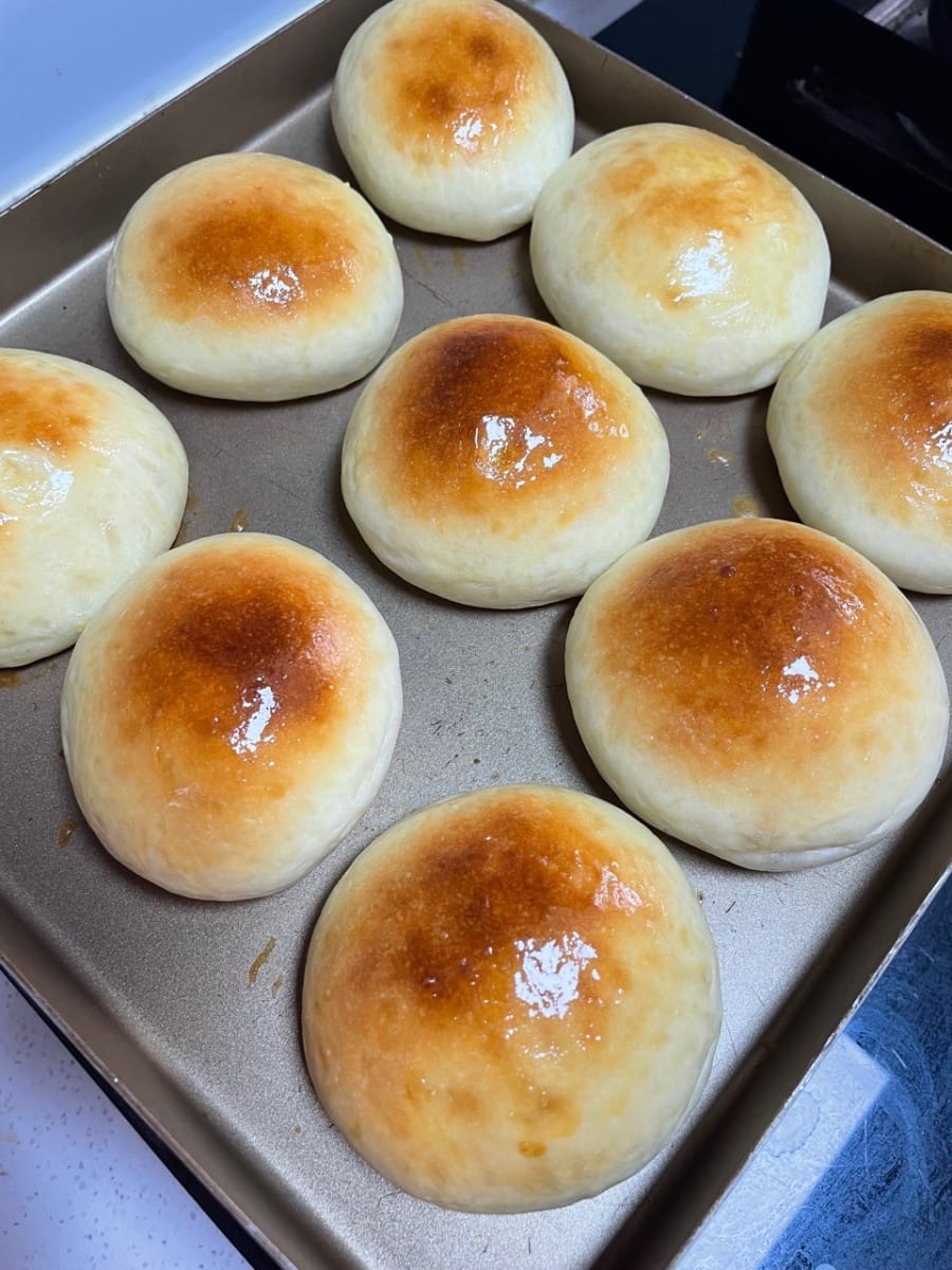 - 小餐包用180°C上下火,放最底层烤,8分钟的时候盖锡纸,总共烤12分钟。