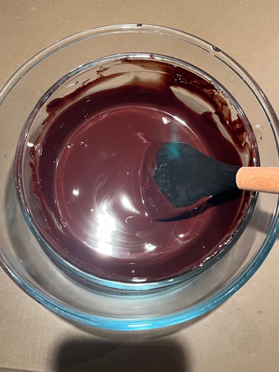 将牛油和巧克力加在一起并隔水溶化