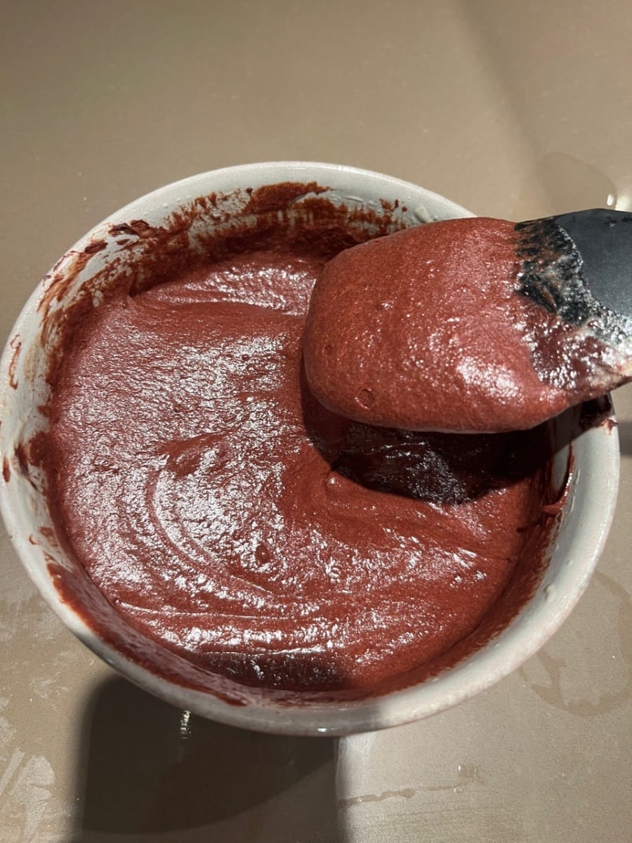 加入朱古力糊,铺平