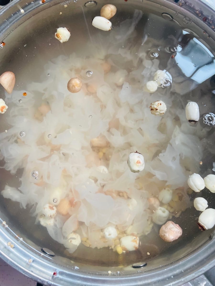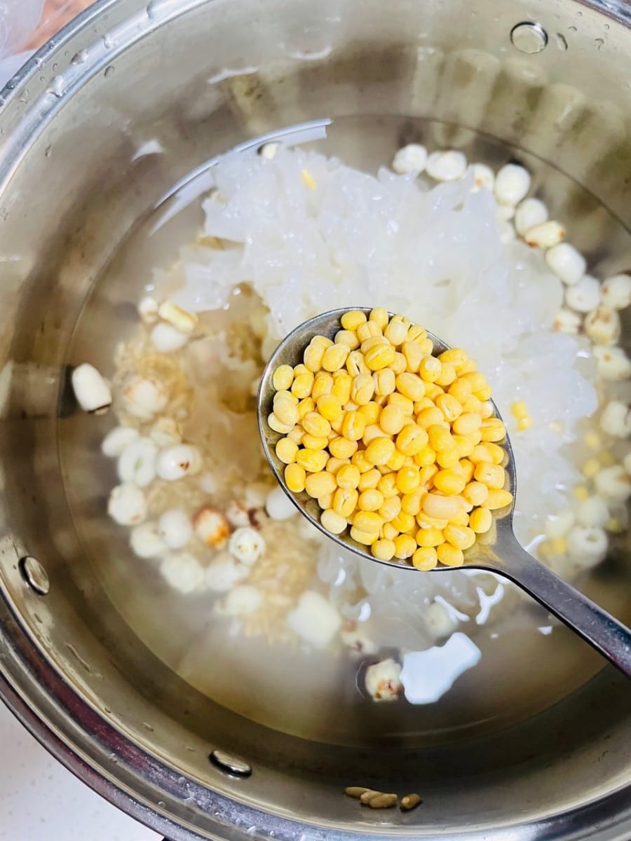- 1. 先泡!把藜麦、燕麦、莲子、花生、去皮绿豆、银耳这些杂粮,全丢冷水里泡够3小时,泡软了再洗干净,银耳泡开了记得撕小朵。