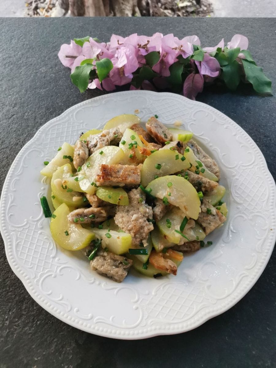 zucca pelosa saltata in padella, pesce macinato e gamberi secchi - Italiana (Italian) version