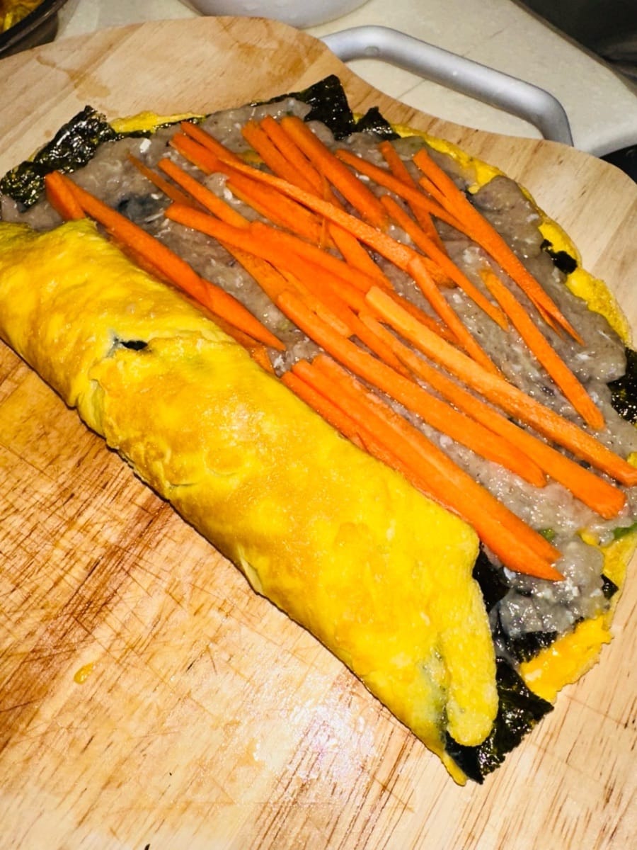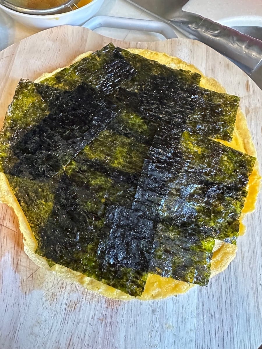 將海苔鋪在蛋皮上