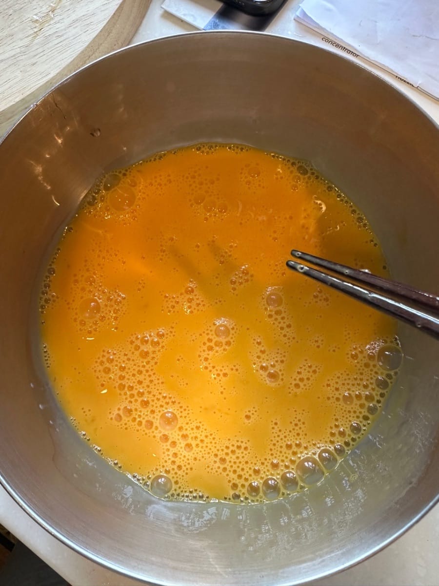 首先,將雞蛋、牛奶、少許鹽和糖充分混合。