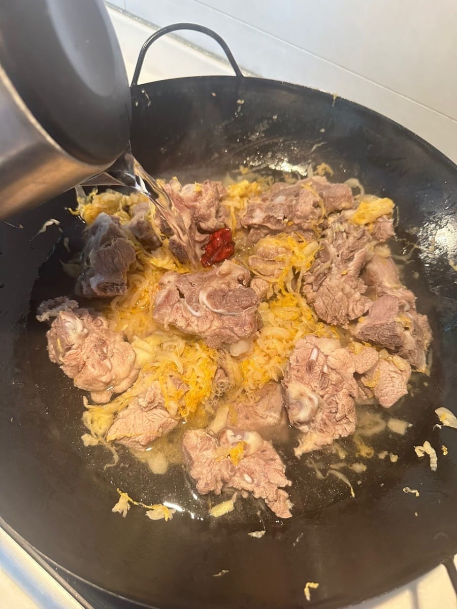 加入燙好的排骨一起翻炒