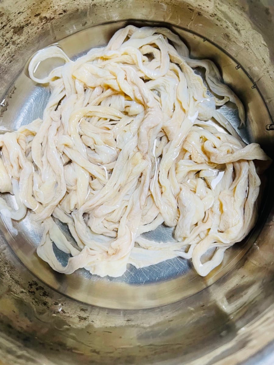 糯米(做糯米腸才用)提前泡一晚上,天熱就丟雪櫃泡(常溫泡容易發酸變餿)