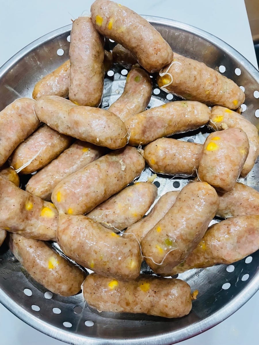 蒸到15分鐘的時候,掀開鍋蓋再用牙籤紮幾下腸(加熱過程中肉餡會出水/出氣,補扎孔能防止中途爆裂)