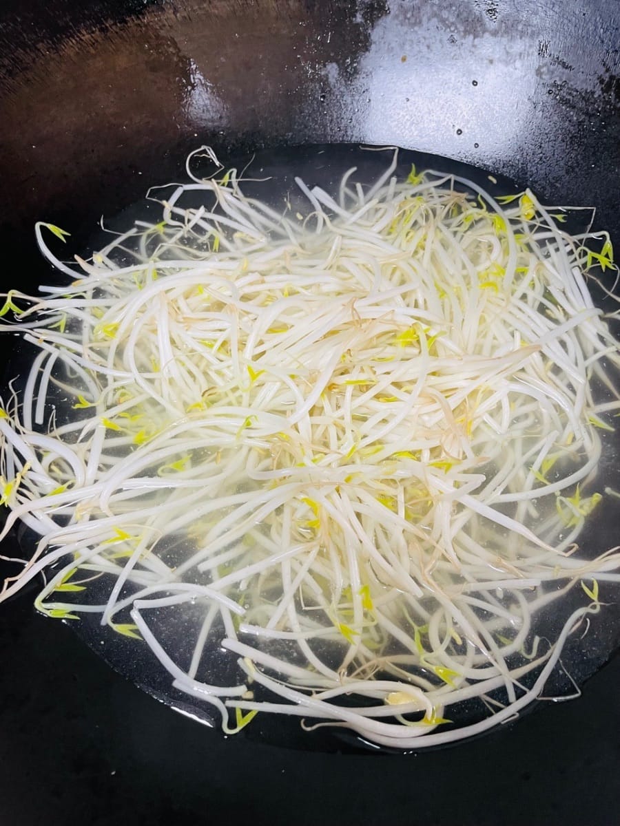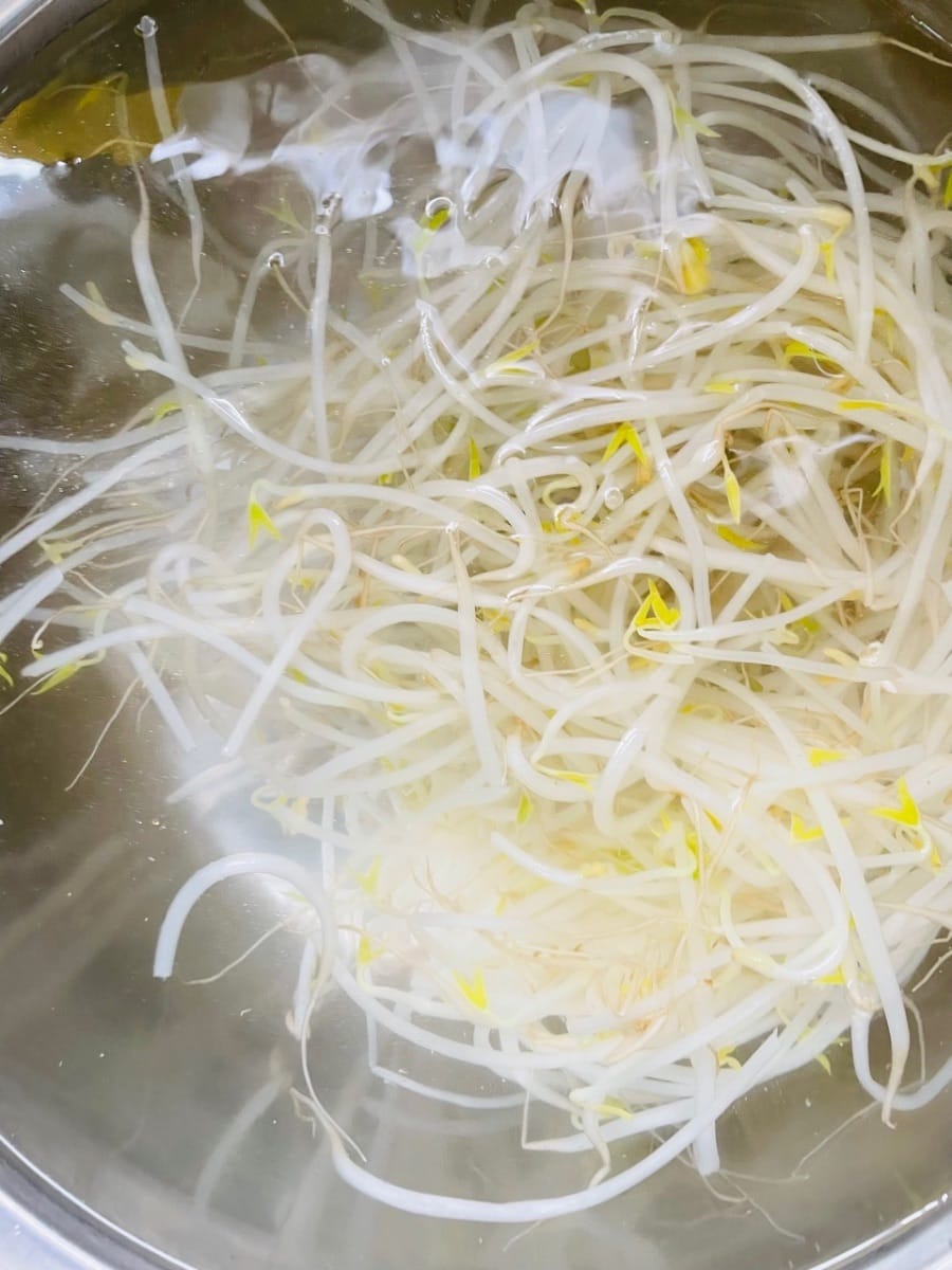 7. 把豆芽洗淨,水開後汆燙水,撈出泡進冷開水里,以保持脆感。