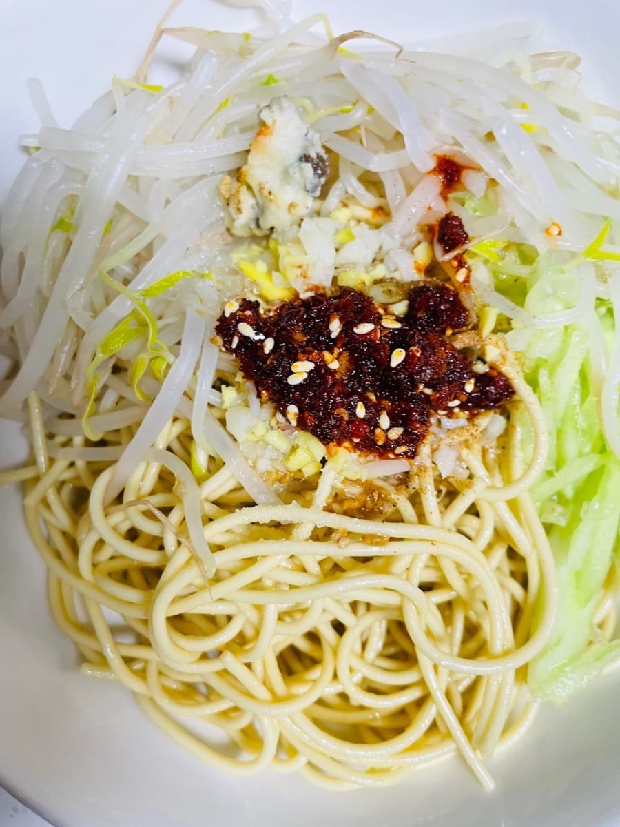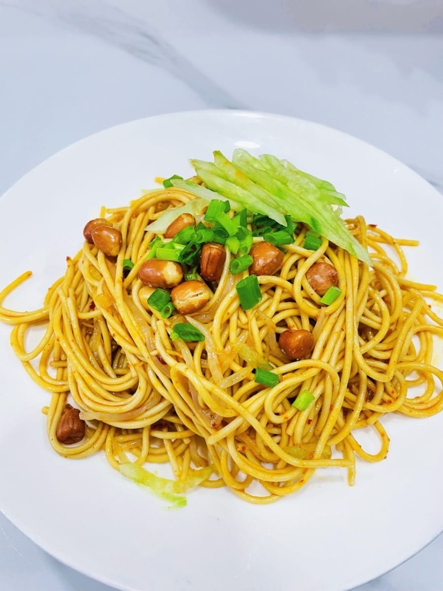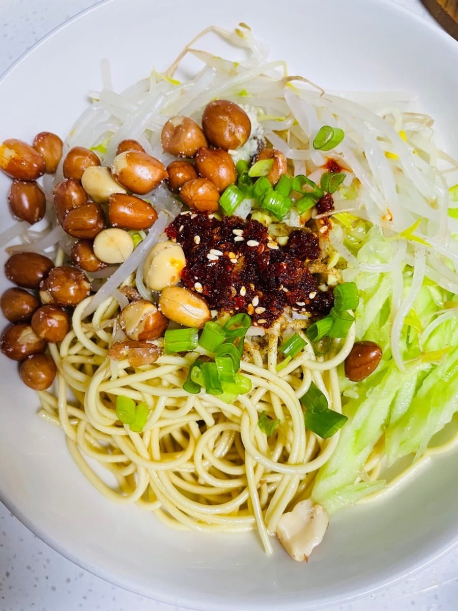 將麵條放入大碗中,加入青瓜絲、綠豆芽,依序加入生抽 15 - 20 毫升、陳醋 10 - 15 毫升、白糖 5 - 8 克、鹽 1 - 2 克、雞精 1 - 2 克、花椒油 5 - 8 毫升、芝麻油 5 - 8 毫升、辣椒油 20 毫升 15毫升,再放入薑蒜末水、花椒粉攪拌均勻即可。 將麵條放入大碗中,加入青瓜絲、綠豆芽,依序加入生抽 15 - 20 毫升、陳醋 10 - 15 毫升、白糖 5 - 8 克、鹽 1 - 2 克、雞精 1 - 2 克、花椒油 5 - 8 毫升、芝麻油 5 - 8 毫升、辣椒油 20 毫升 15毫升,再放入薑蒜末水、花椒粉攪拌均勻即可。 將麵條放入大碗中,加入青瓜絲、綠豆芽,依序加入生抽 15 - 20 毫升、陳醋 10 - 15 毫升、白糖 5 - 8 克、鹽 1 - 2 克、雞精 1 - 2 克、花椒油 5 - 8 毫升、芝麻油 5 - 8 毫升、辣椒油 20 毫升 15毫升,再放入薑蒜末水、花椒粉攪拌均勻即可。 將麵條放入大碗中,加入青瓜絲、綠豆芽,依序加入生抽 15 - 20 毫升、陳醋 10 - 15 毫升、白糖 5 - 8 克、鹽 1 - 2 克、雞精 1 - 2 克、花椒油 5 - 8 毫升、芝麻油 5 - 8 毫升、辣椒油 20 毫升 15毫升,再放入薑蒜末水、花椒粉攪拌均勻即可。 將麵條放入大碗中,加入青瓜絲、綠豆芽,依序加入生抽 15 - 20 毫升、陳醋 10 - 15 毫升、白糖 5 - 8 克、鹽 1 - 2 克、雞精 1 - 2 克、花椒油 5 - 8 毫升、芝麻油 5 - 8 毫升、辣椒油 20 毫升 15毫升,再放入薑蒜末水、花椒粉攪拌均勻即可。