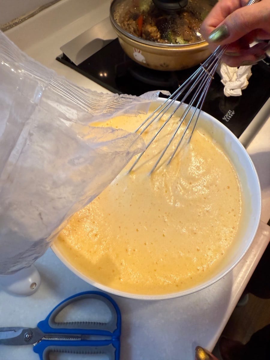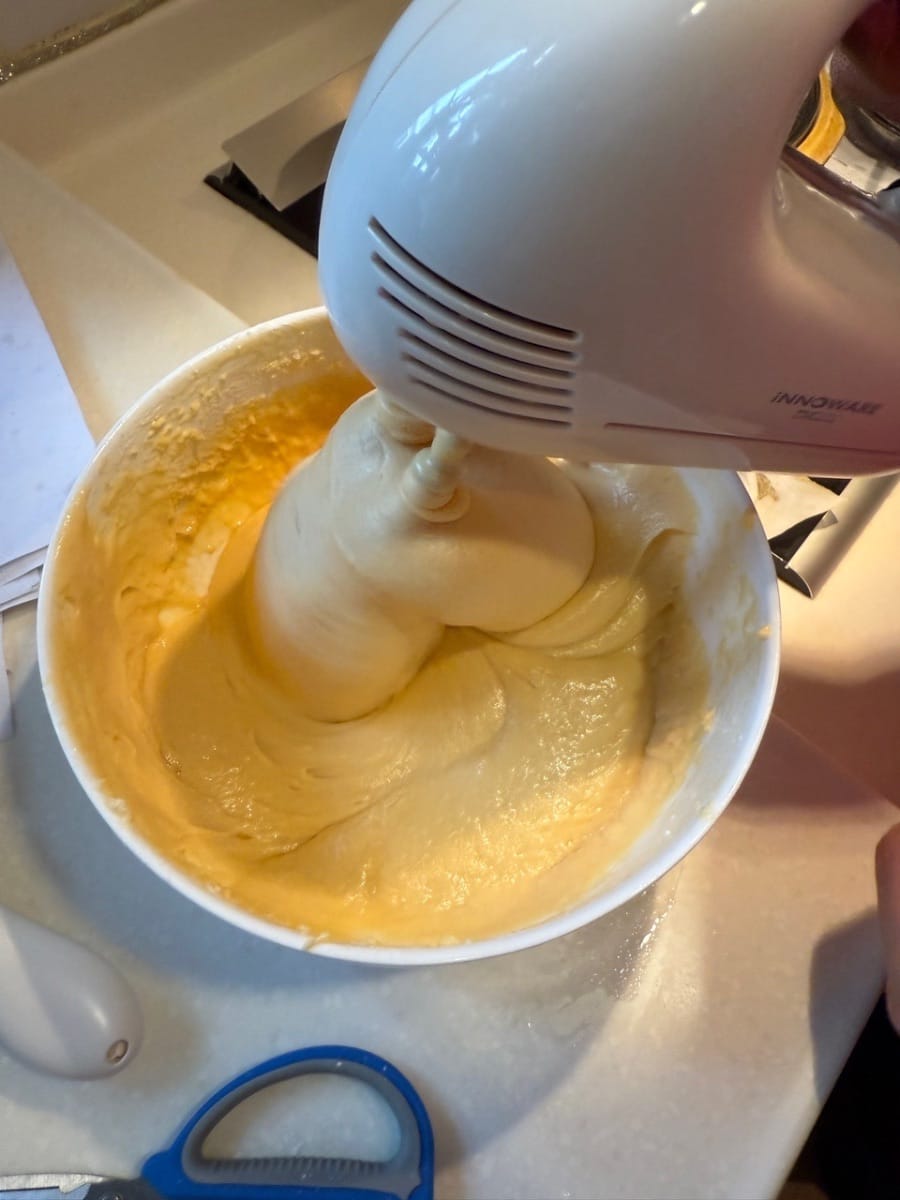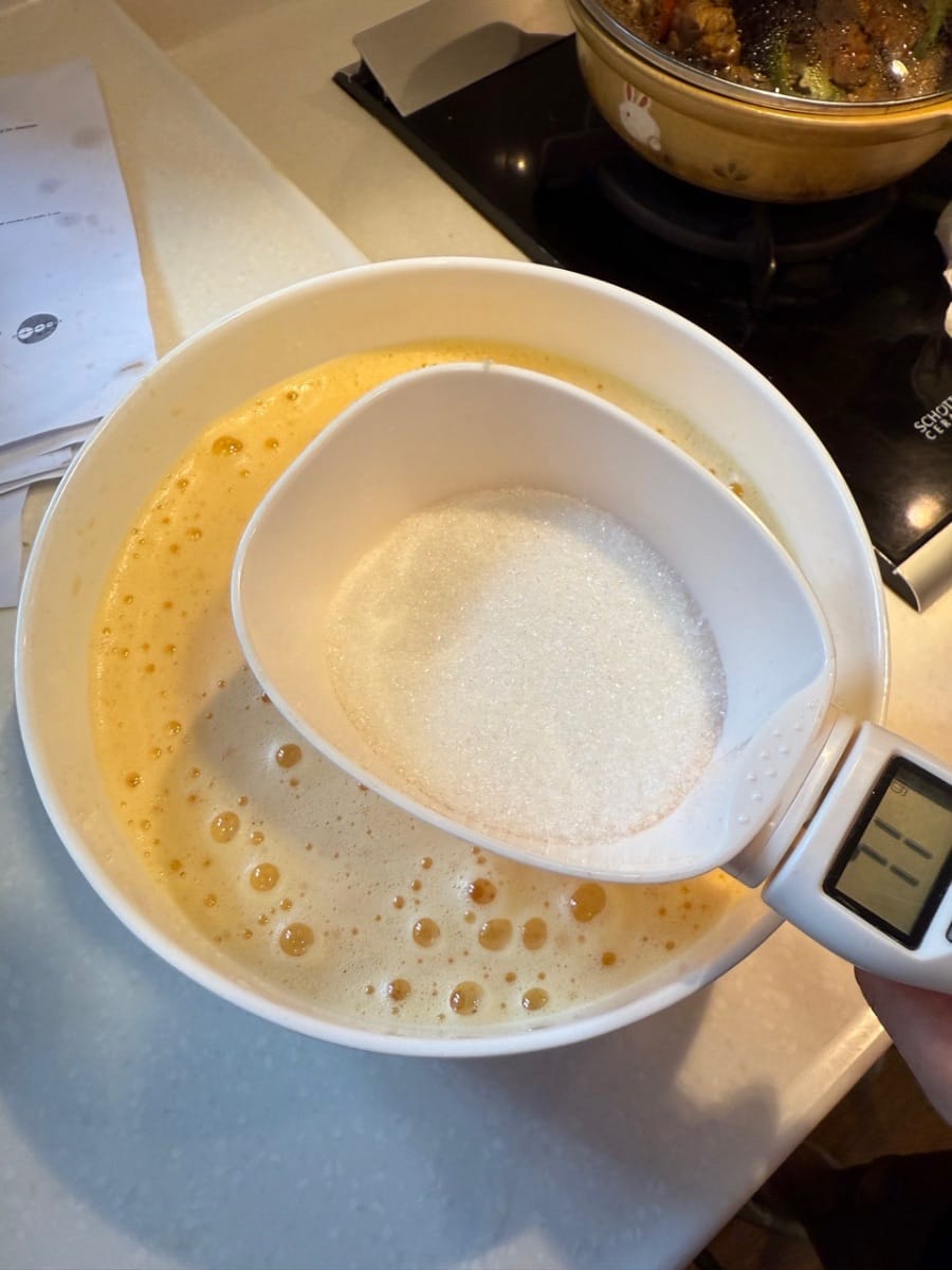 加花奶,牛油,白糖,然後攪拌均勻