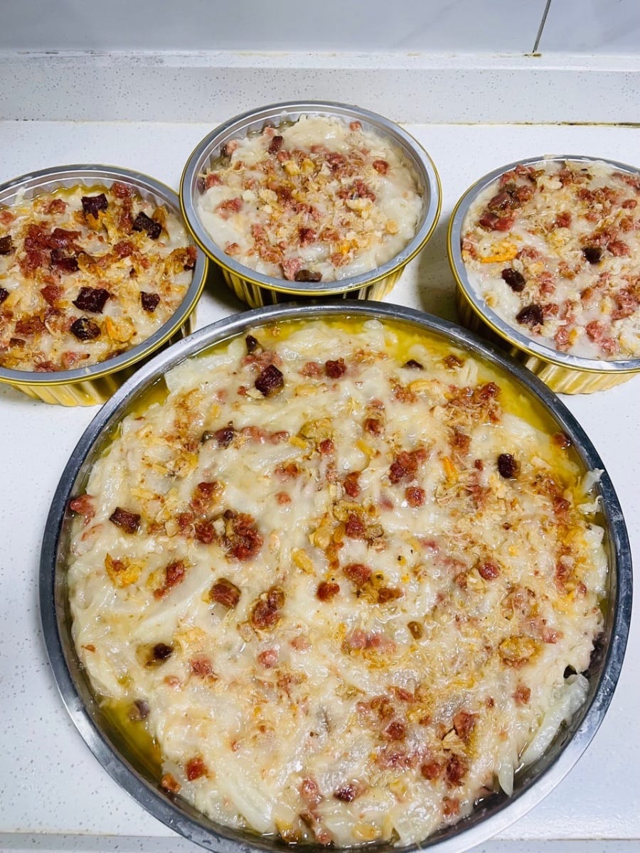 Steamed and Prosperous Preserved Meat Radish Cake - English version