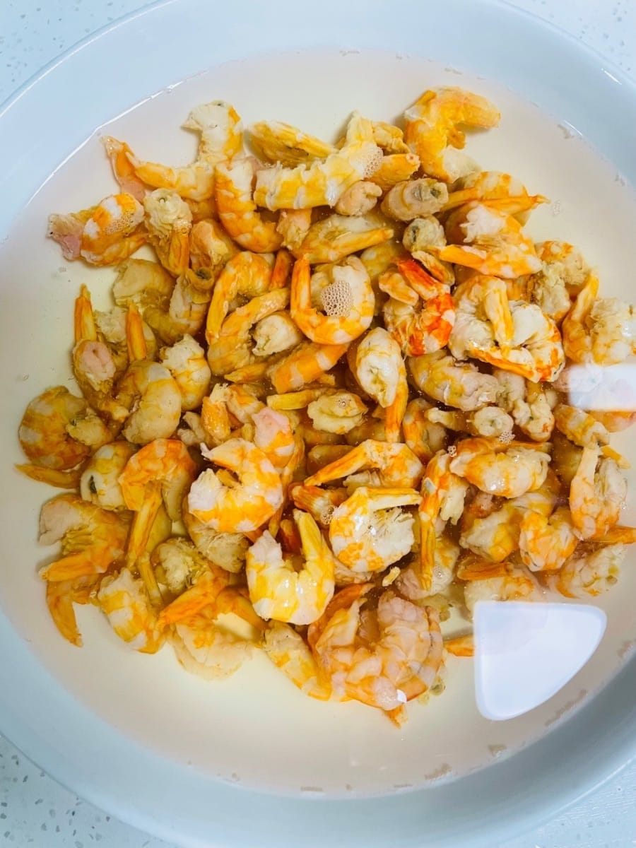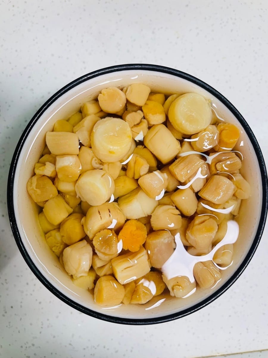 蝦米和瑤柱提前洗乾淨,用清水泡4小時以上,泡過的水別倒掉,後面全靠它提鮮。