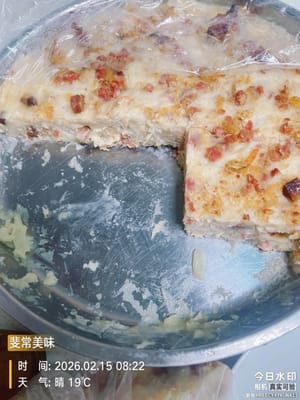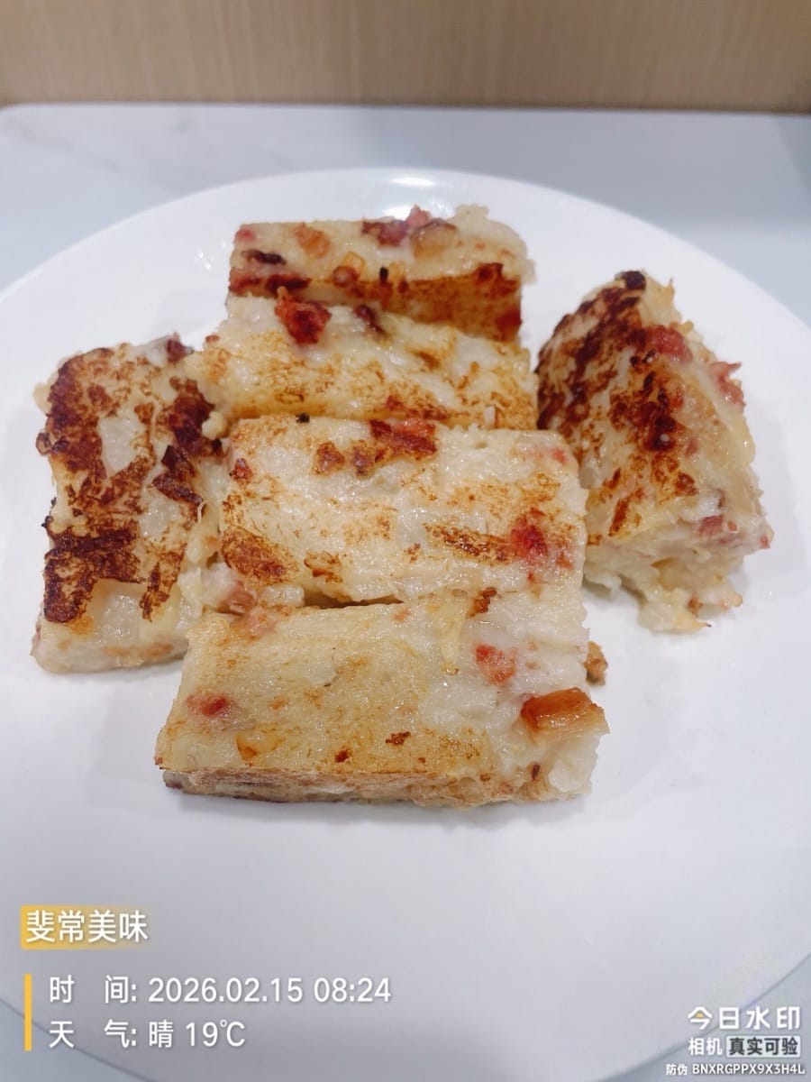 過年必備的廣式臘味蘿蔔糕,真的做到了「蒸蒸日上」!看著這滿滿一大盤,油潤的臘腸丁、金黃的瑤柱碎鋪在上面,光賣相就透著富貴氣。一口咬下去,蘿蔔的清甜瞬間化開,混著臘味的鹹香醇厚,還有蝦米瑤柱的鮮勁兒在嘴裡打轉。糕體彈牙軟糯,一點都不黏牙,吃進肚子裡暖呼呼的。這不僅是解饞的零食,更是實打實的好彩頭,寓意一年更比一年強,待客自吃都超有面子!