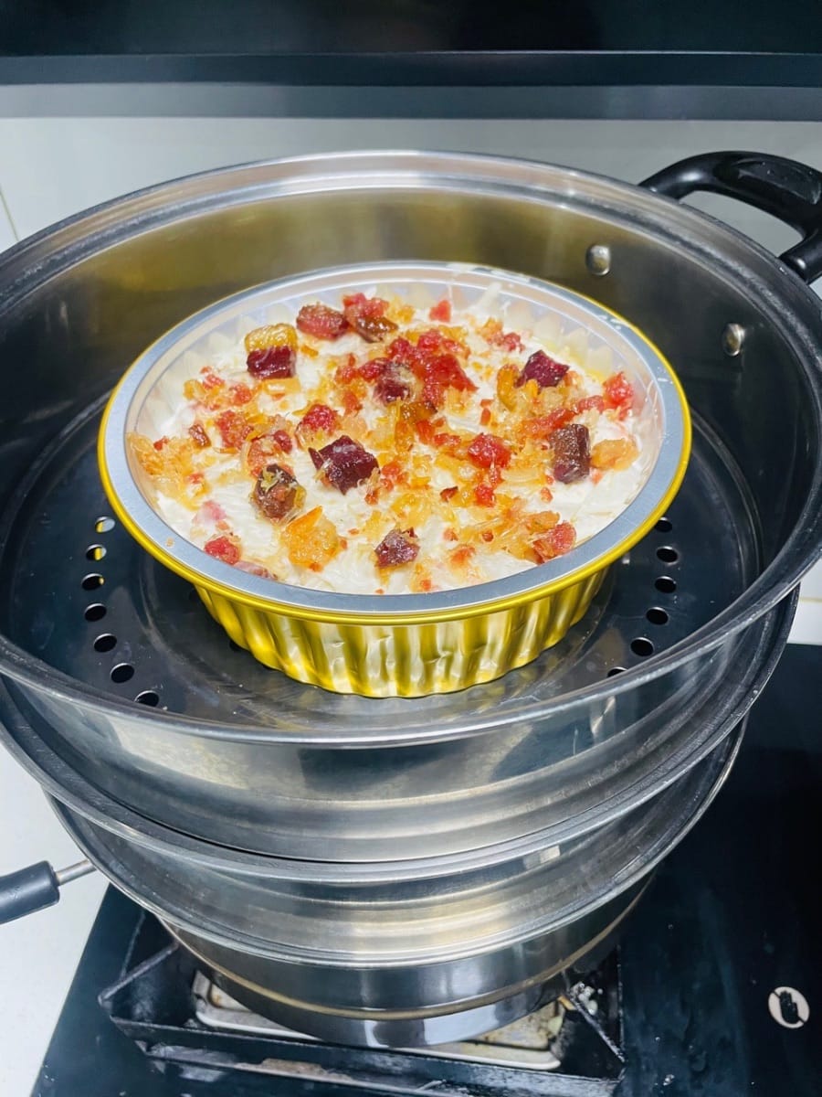 水燒開後上鍋,大火蒸50分鐘就搞定了。我的分量是這麼多,你們可以減半做。